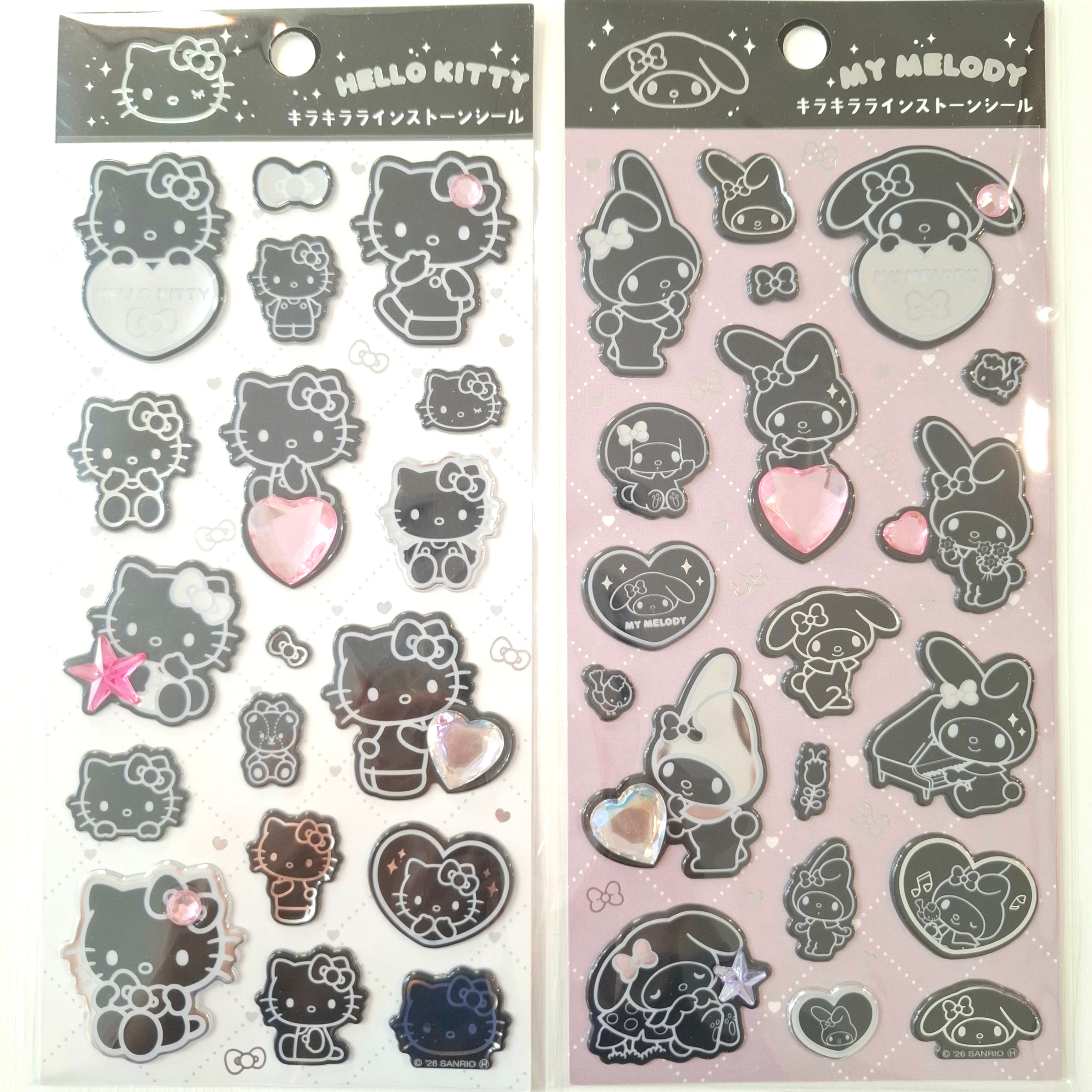 キラキララインストーンシール モノクロシリーズ ハローキティ、マイメロディ シールセット
